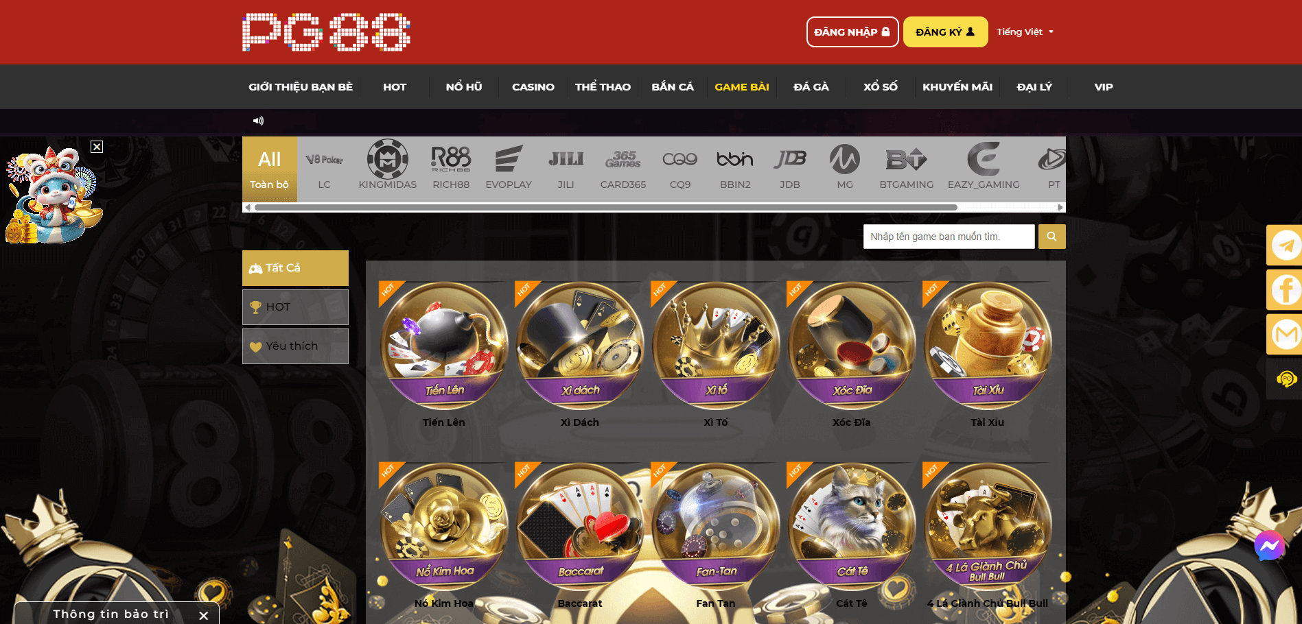 Game bài luôn là hình thức giải trí hấp dẫn, kết hợp giữa chiến thuật, may mắn và tâm lý. Game bài PG88 đã mang những yếu tố này lên nền tảng trực tuyến, tạo ra một không gian giải trí hiện đại, uy tín và tiện lợi cho người chơi. Tại PG88, người chơi có thể thưởng thức nhiều thể loại game bài khác nhau, từ những trò chơi cổ điển như baccarat, poker, blackjack đến các phiên bản sáng tạo, độc quyền của PG88, mang đến cảm giác mới mẻ và kịch tính.